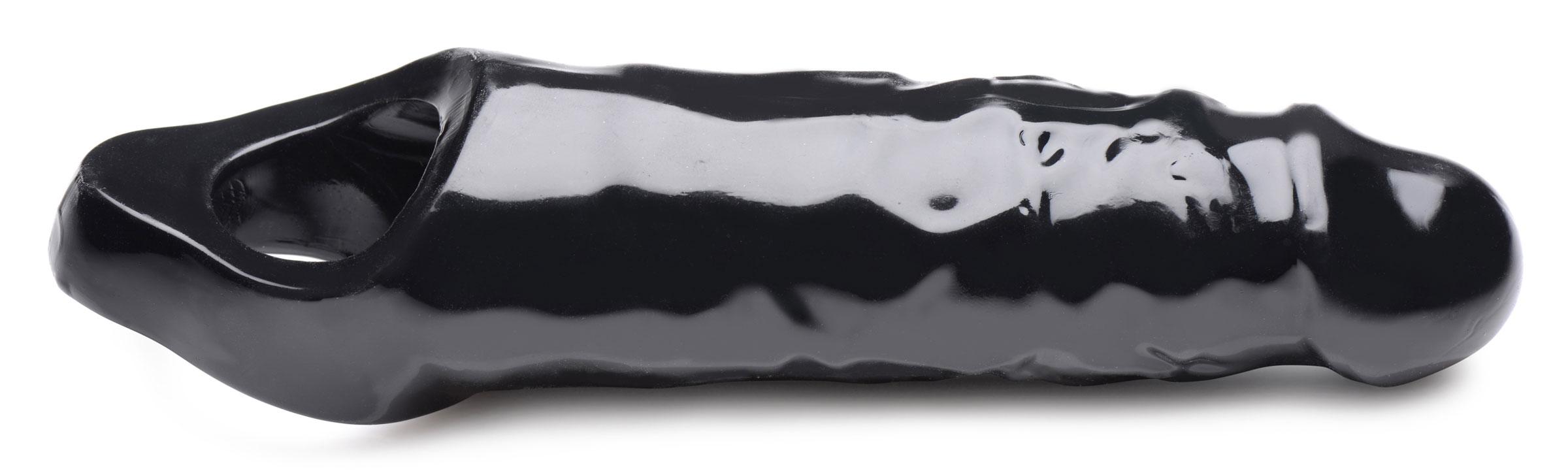 This lifelike penis extender aims to satisfy both you and your partner by providing increased size as well as a prolonged erection, great for lengthy sessions. Simply insert the penis into the comfortable, hollow shaft, and then pull the testicles through the base ring. The inside of the hollow shaft has exciting sensation nodes, for stimulation for the wearer. Entice them with a larger, longer-lasting erection, for unending pleasure and over the edge climaxes.