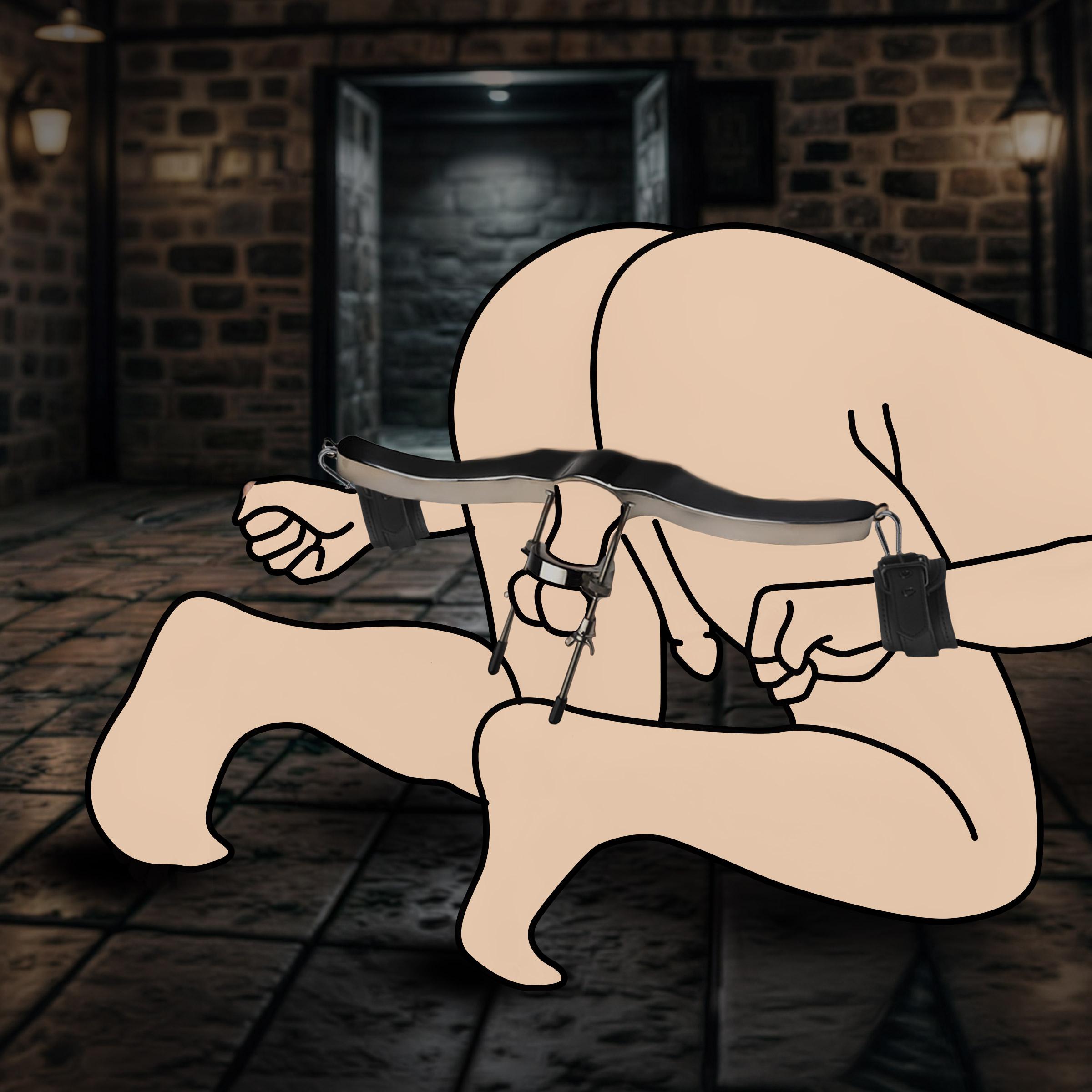 It's so good to see them struggle. Locked into the humbler, they are forced to kneel or else feel the painful pricks of the screws on their sack while their own prick gets pulled away from their thighs. It is impossible for them to stand, and this pleases you greatly. This man belongs on their knees… begging, pleading, pleasing, and worshipping you until you allow his freedom. You dangle the keys above him, just out of reach, and smile as you think up so many delightful ways to make him pay his penance.