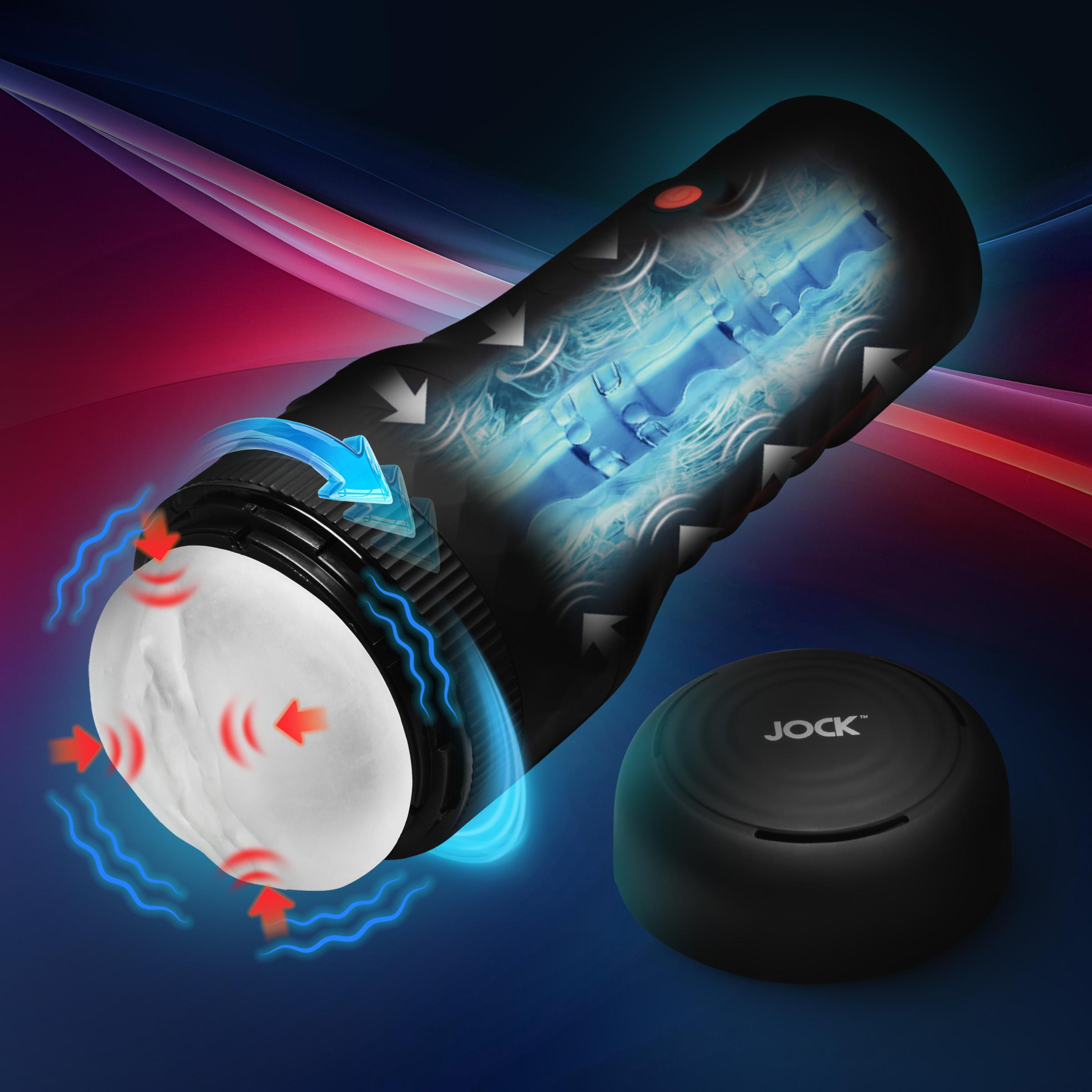 As you push your head into the soft, stretchy rubber vulva in your hand, you feel the massaging caress of the tunnel's grooves. The buzzing vibrations wake up your senses, pulsing and buzzing so much you feel it in your balls. As you push it in further you feel the squeeze around your shaft. You can handle it tighter, so you turn the ring on the case and feel the pressure increase! You pull out and feel the intensity grow. Every slow and steady stroke makes you feel the intensity even more, growing in pressure and sensitivity until you can't help but let it all go!