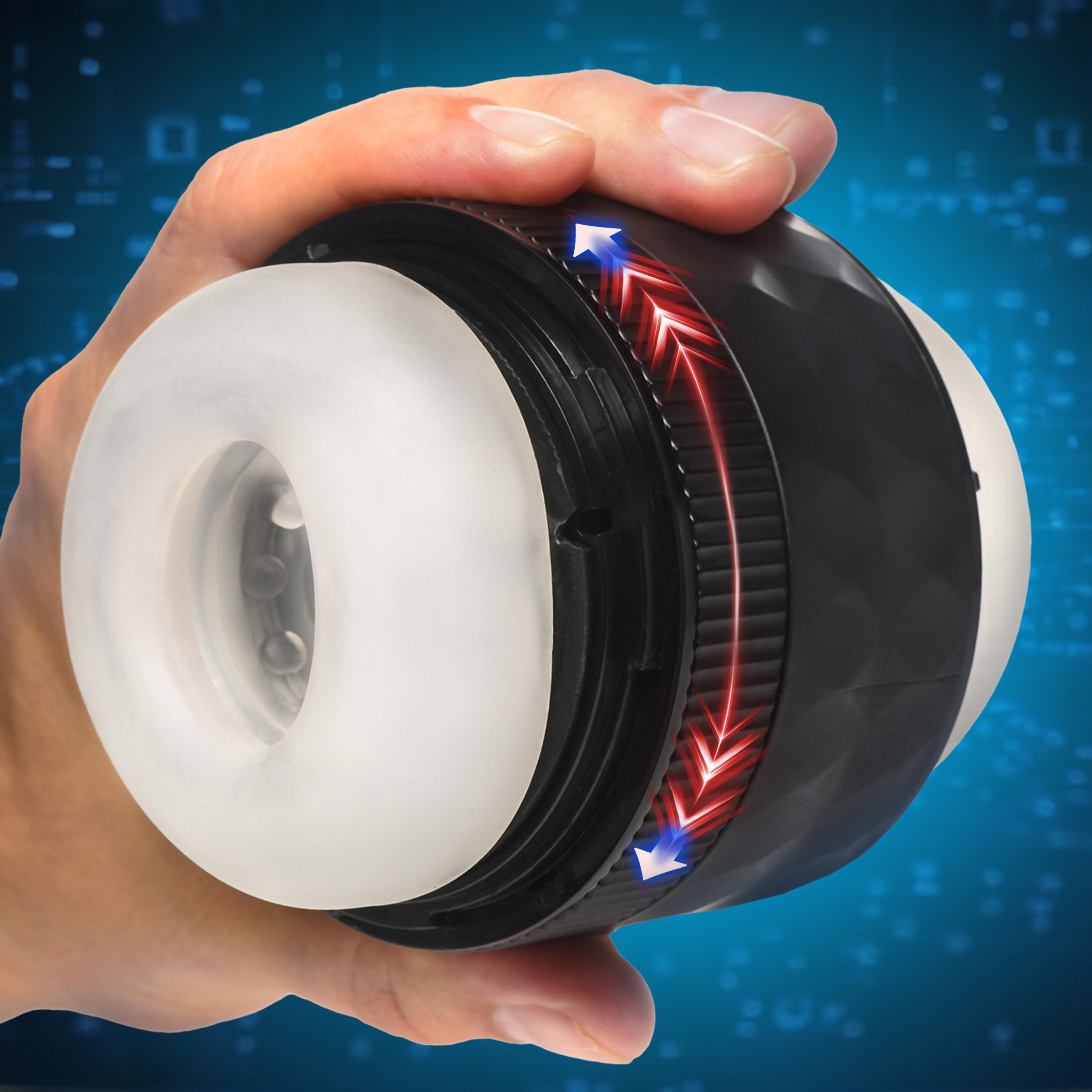 Key Features: Custom Tightness: Choose between 6 tightness levels that you adjust via the outer ring on the case. Textured Tunnel: Lined with stimulating nubs. Two Hole Sizes: Each end of the tunnel has a different size hole. Choose between a wider or smaller hole! Soft TPE: Made from phthalate-free, body-safe, super soft and stretchy TPE. Cum-Thru Tip: Both caps come off so you can have easy clean-up and a cum-thru tip. Non-Slip Outer Case: Grip the outer case easily and close it up to keep out dust and debris.